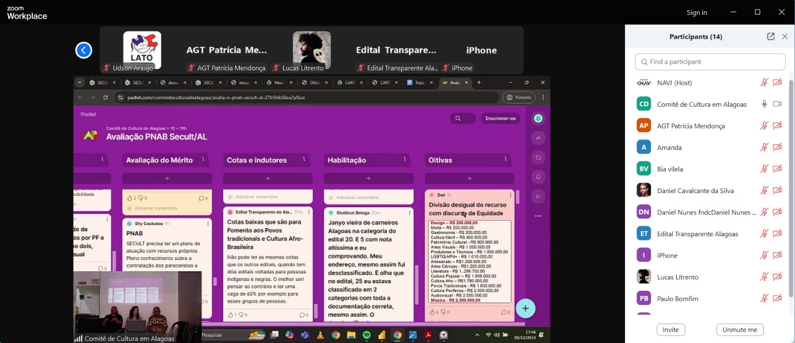 Agentes culturais de Alagoas se reuniram em um evento híbrido para avaliar a execução da Política Nacional Aldir Blanc pelo governo do estado. O encontro, que contou com a presença de mais de 50 participantes online e presencialmente, teve como objetivo principal ouvir as demandas do setor e sugerir melhorias para os próximos editais. A discussão permitiu que os participantes apontassem problemas e propusessem soluções para aprimorar a distribuição dos recursos.