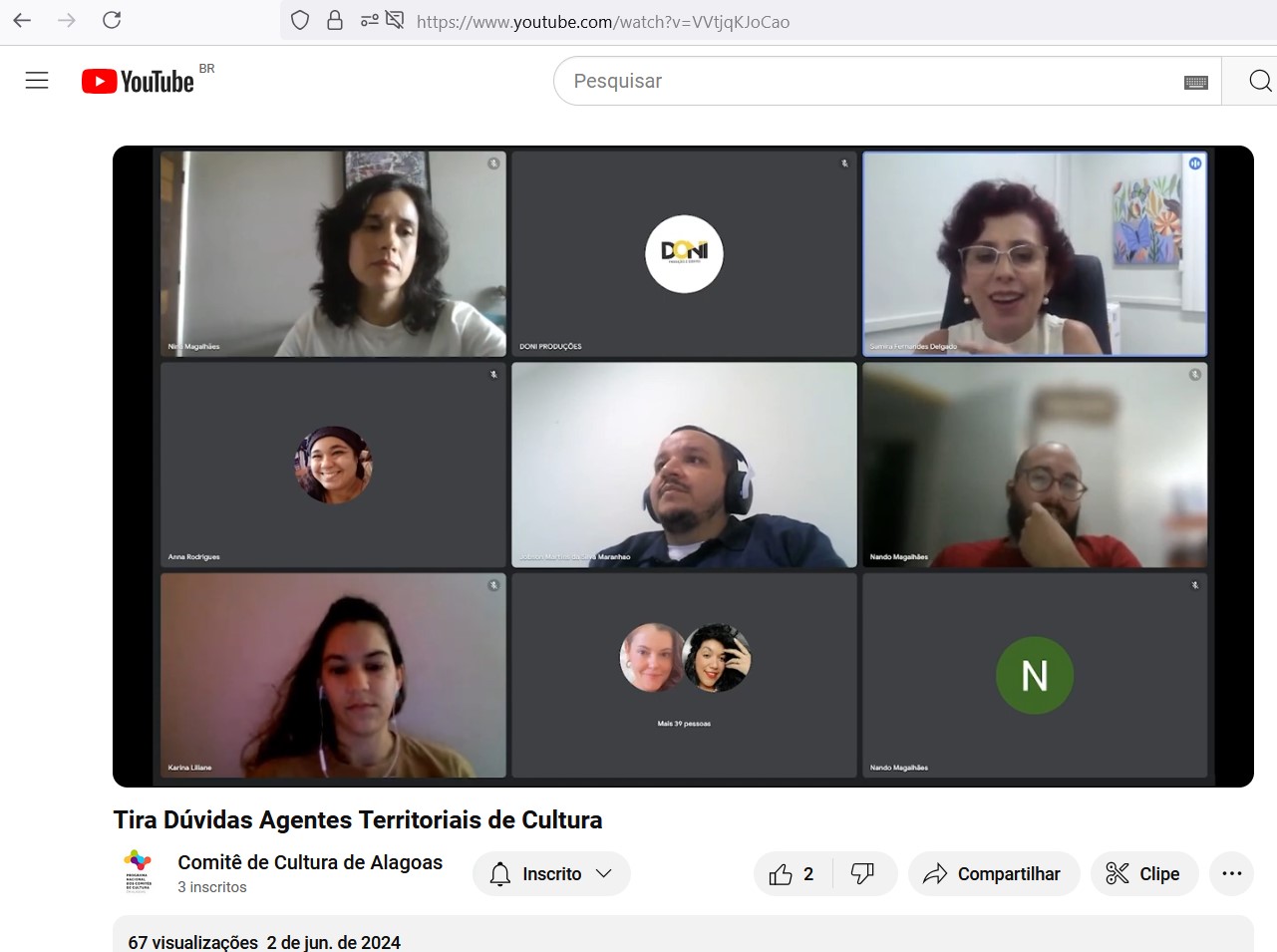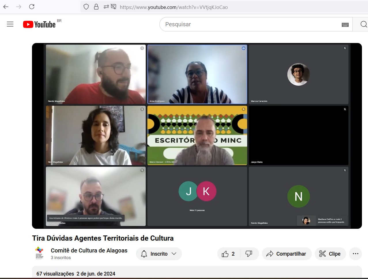 O Comitê de Cultura de Alagoas promoveu uma live especial para tirar dúvidas sobre o Edital de Agentes Territoriais de Cultura. O encontro online, que durou três horas, reuniu especialistas e agentes culturais de todo o estado interessados em participar do edital.