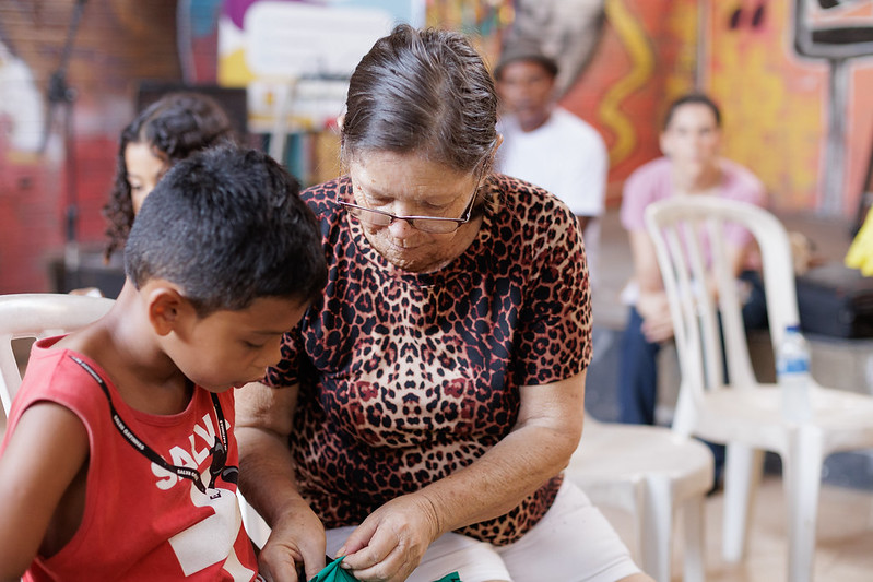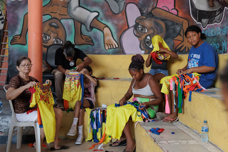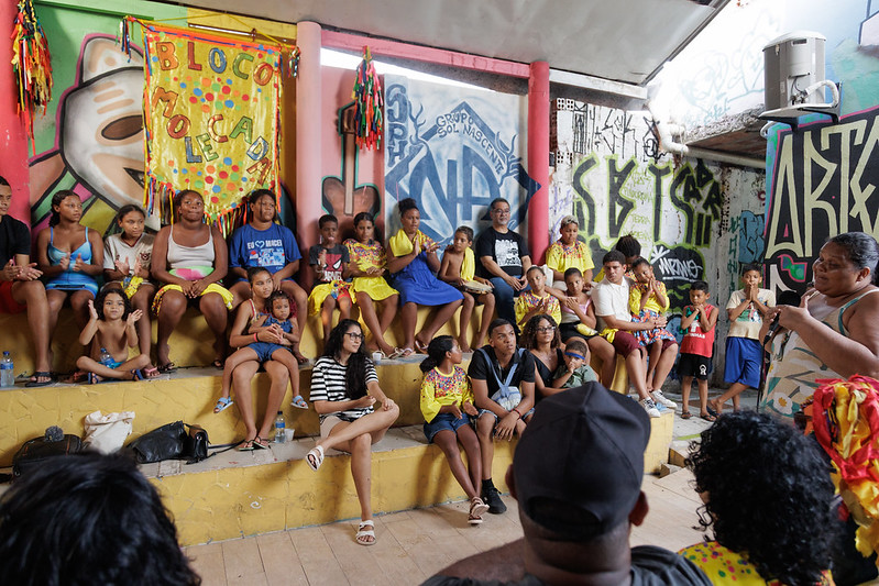 Após a discussão, a oficina prática, ministrada por Quitéria Dias, ensinou os participantes a confeccionar as indumentárias do bobo. Com materiais e uma camisa do bloco, 33 pessoas, incluindo muitas crianças, puderam criar suas próprias versões da fantasia, unindo a teoria do debate com a prática da produção artística. A atividade, com duração de três horas, foi uma oportunidade de aprendizado e transmissão de saberes, reforçando a importância da cultura popular na comunidade.