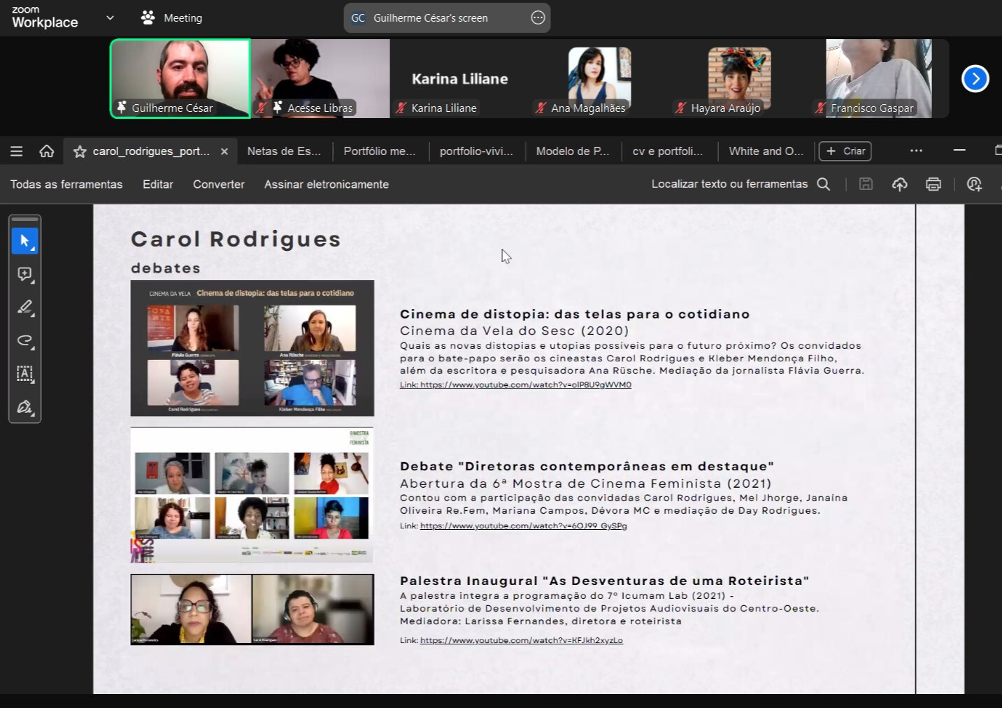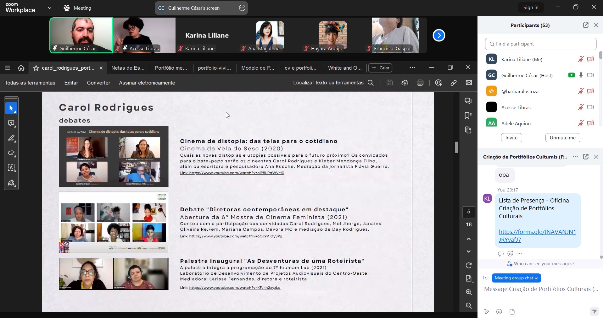 Durante três horas, os participantes puderam esclarecer dúvidas sobre organização de documentação, modelos de portfólios e estratégias para se destacar em processos seletivos culturais. A oficina foi gravada e está disponível no canal do YouTube do Comitê de Cultura de Alagoas para quem quiser assistir ou rever o conteúdo.